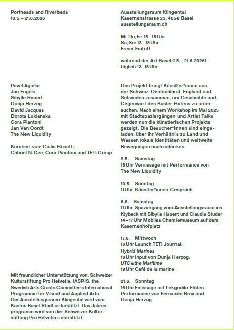 Artists have long been drawn to the sea and ports as sites for inspiration and creative interrogation. The present volume of essays and artworks is concerned with the maritime world, from the coast and the harbour to the open sea, and its rich history of transformation, encounters, and navigations, as well as transnational and transcultural formations. To be followed and activated within an exhibition at @ausstellungsraum_klingental in May 2026.